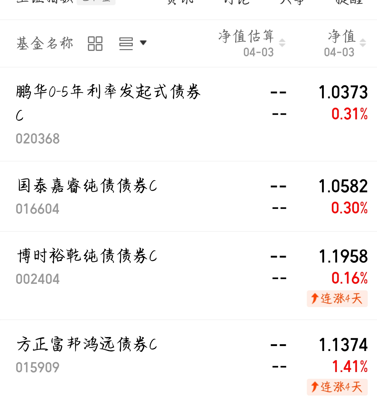 今晚牛逼哦!$方正富邦鸿远收益大涨1.41%,这收益直直上升,而且连涨了四天了,