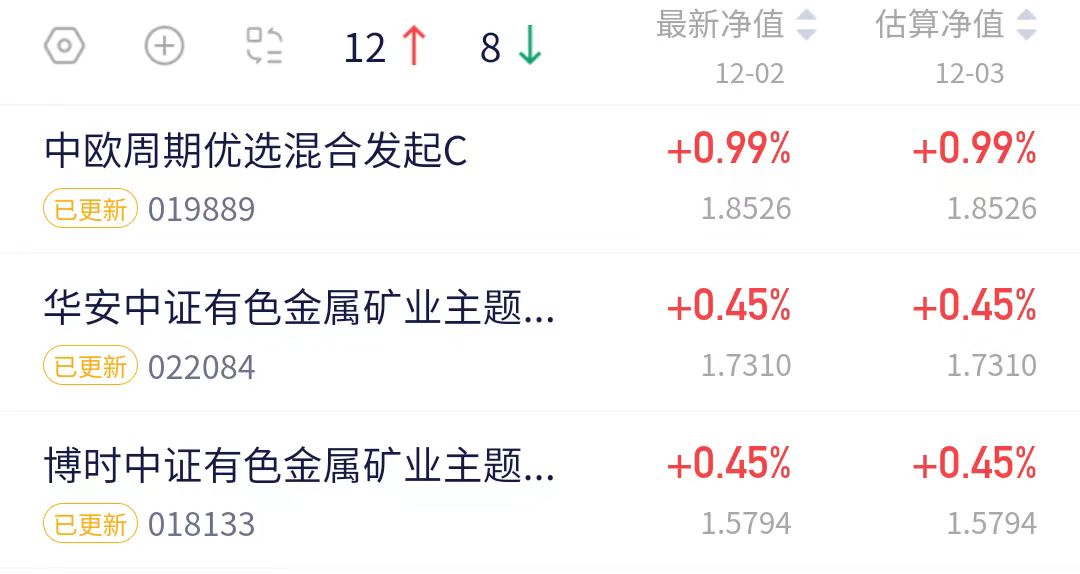 $华安中证有色金属矿业主题指数发起式C(OTCFUND|022084)$上涨0.45%