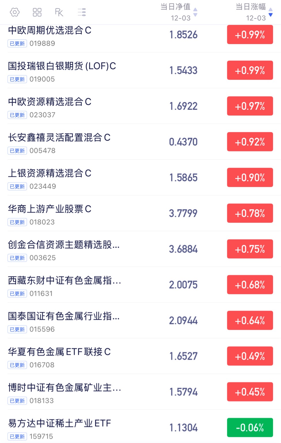 有色金属看过来!中欧周期优选混合今日涨0.99%!