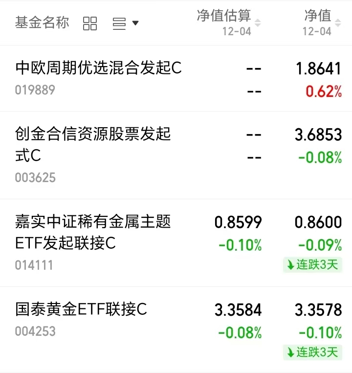 $嘉实中证稀有金属主题ETF发起联接C(OTCFUND|014111)$今天回调0.09%;