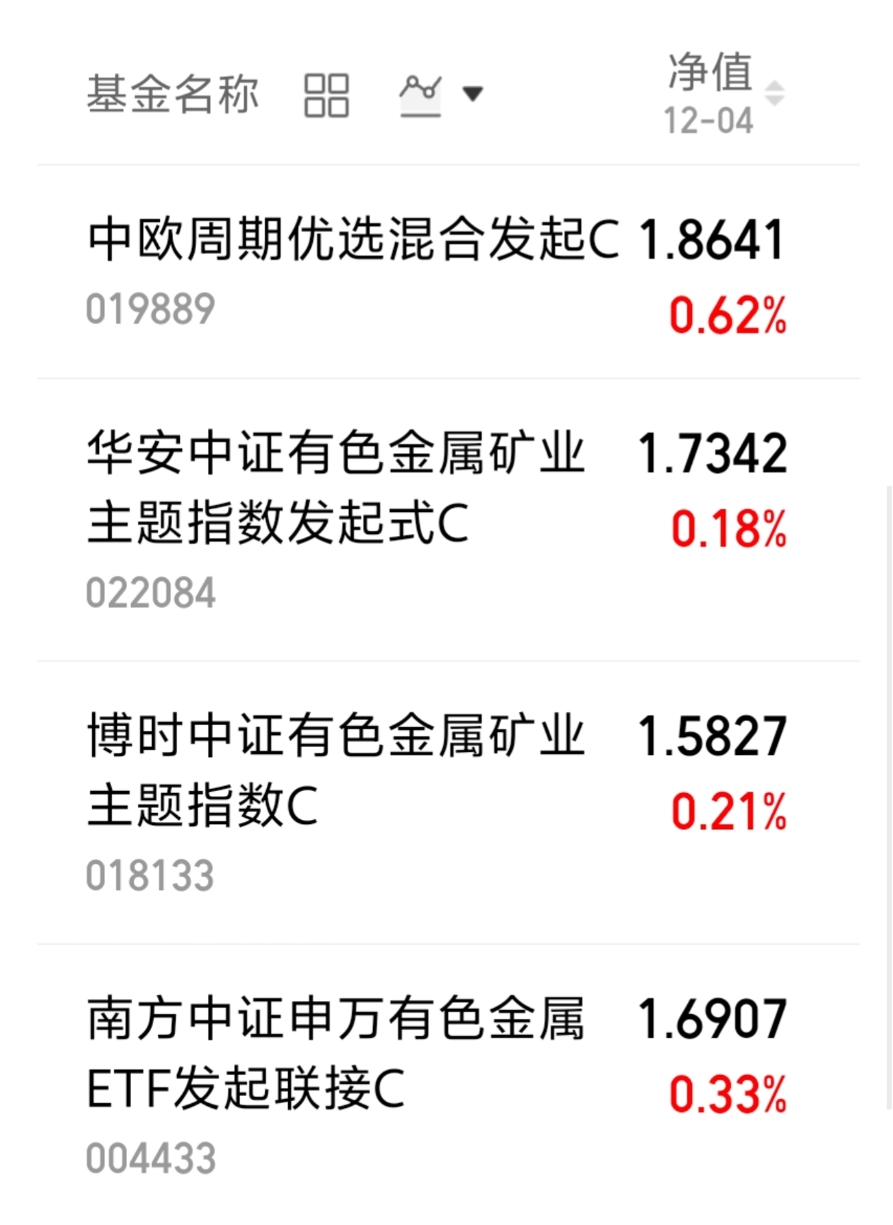 今天市场走势分化,三大指数有涨有跌,周期类板块整体表现比较稳。我关注的几只基金也小幅上涨,给大家同步下最新净值: