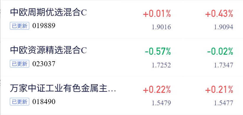 中欧周期优选C今日净值上涨 0.43%,延续了近日周期板块的稳步抬升行情。