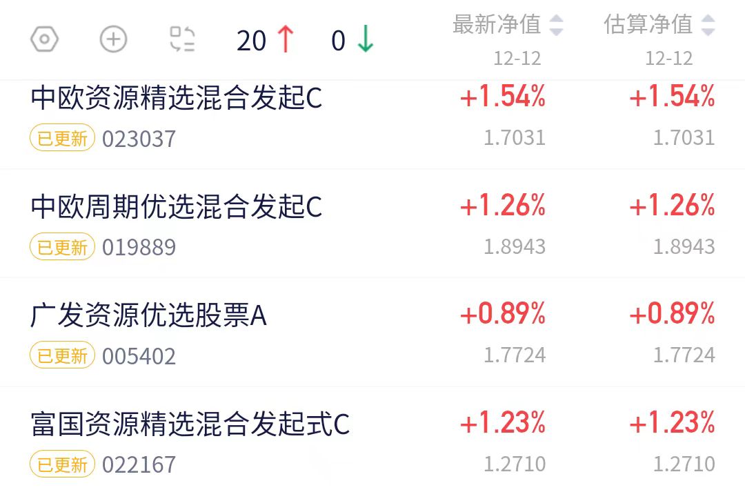 $广发资源优选股票A(OTCFUND|005402)$上涨0.89%
