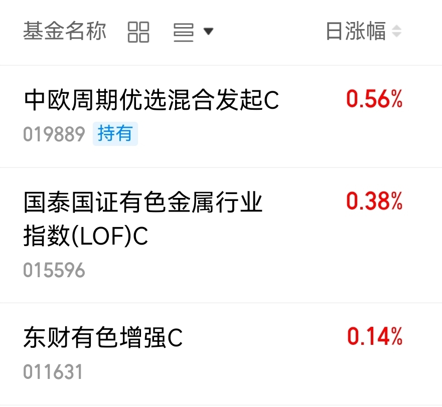 金银大涨,有色金属也是开启修复行情,中欧周期优选混合发起C今天上涨0.56%,比板块指数基涨得好。