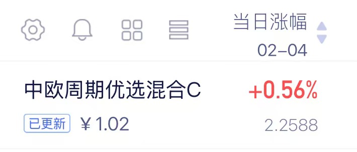 $中欧周期优选混合发起C(OTCFUND|019889)$上涨0.56