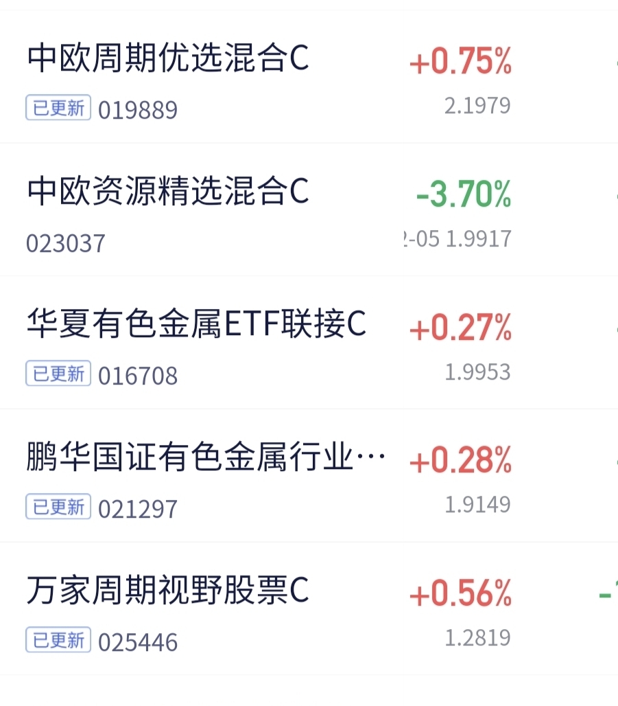 $中欧周期优选混合发起C$ 今天涨幅0.75%!主动的有色金属混合基金,上涨起来的表现好!