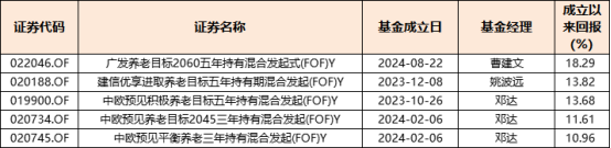 中欧预见积极养老目标五年持有混合发起(FOF)Y是表中成立时间最久的。