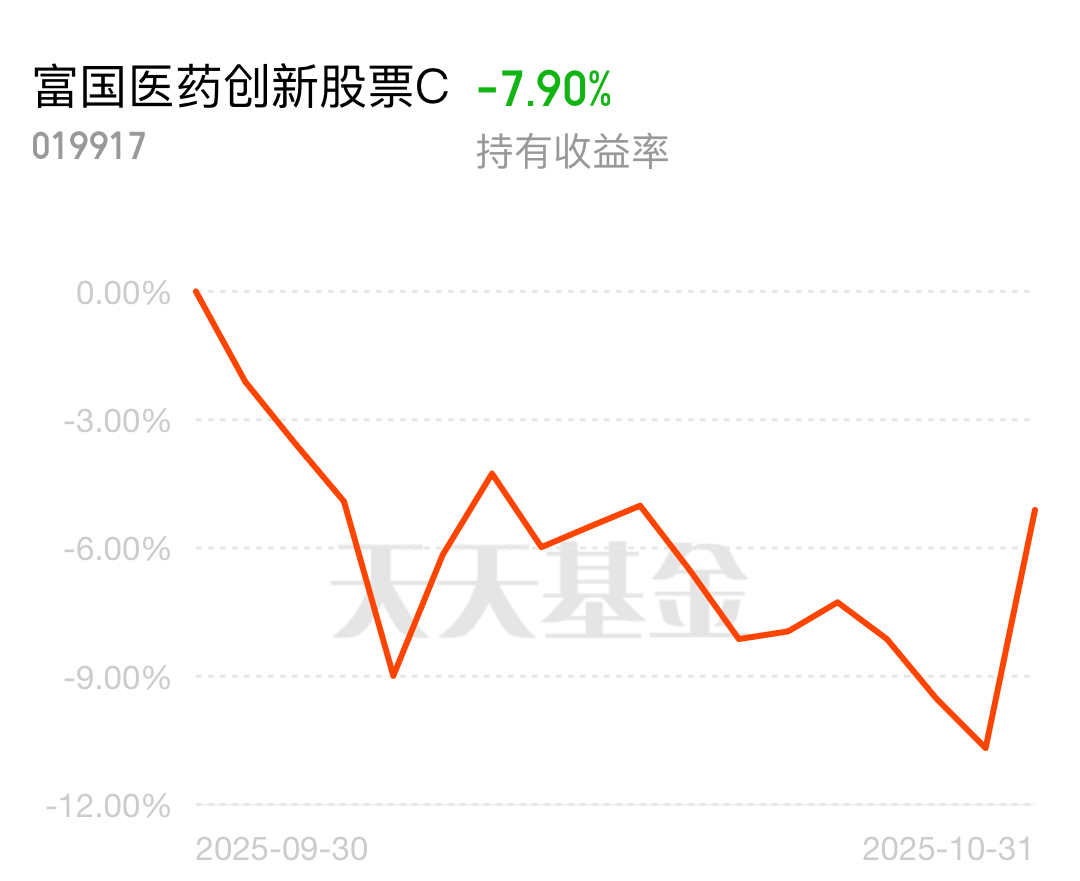 $富国医药创新股票C$ 这个覆盖了A股和港股创新药龙头,因为是主动管理,所以基金经理选股能力也会给基金业绩加分,不仅跑赢行业基准,更是跑赢A股创新药指数,弹性和爆发力没得说,在历经近2个月的阴跌调整后,创新药板块的风险已释放的较为充分,市盈率也回落到偏低水平,是不错的布局机会。#10月投资总结:我的收益如何了?#