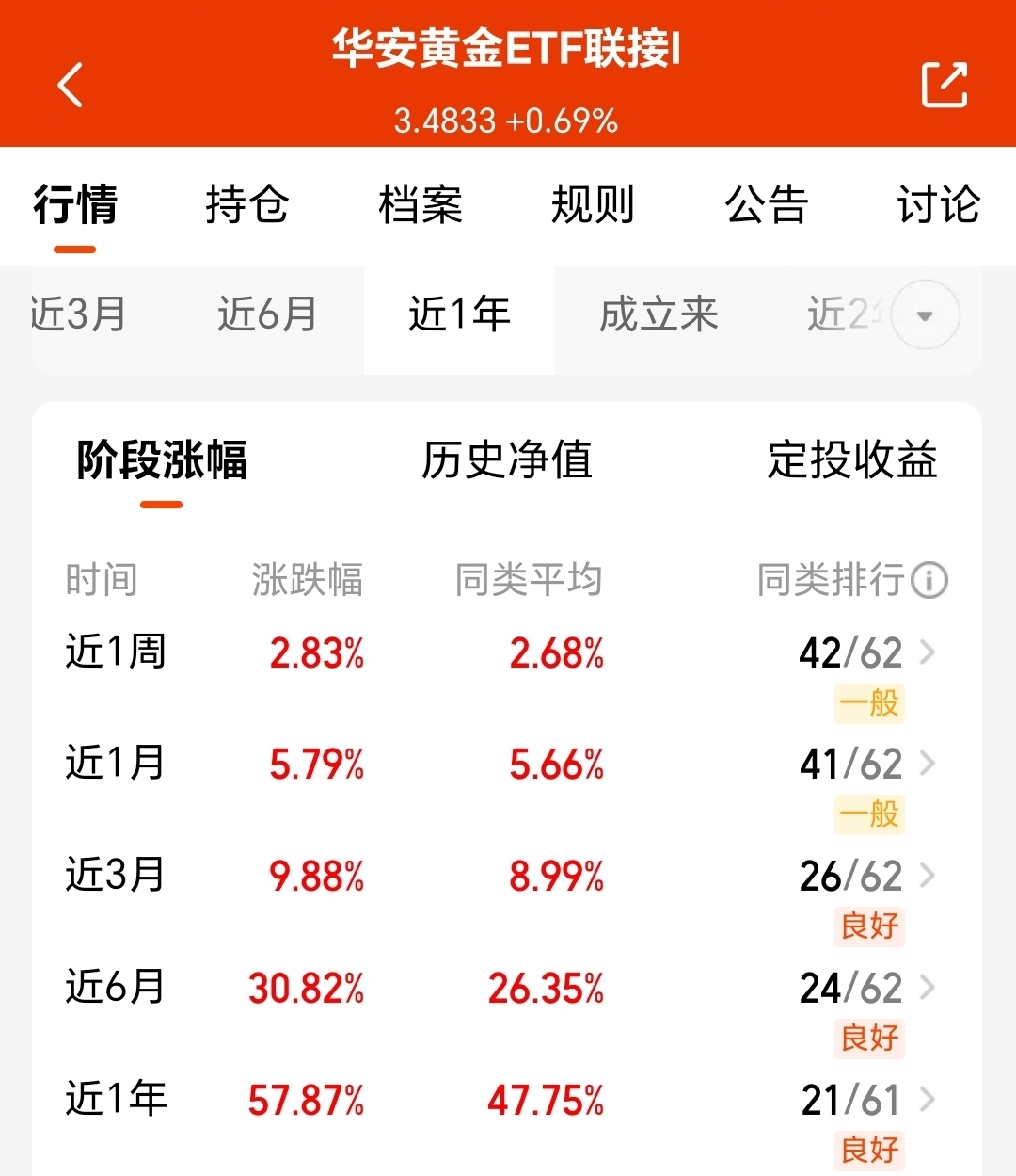 同指数$华安黄金ETF联接I$更能涨,靠低费率每年多赚,近6月30.82%收益,
