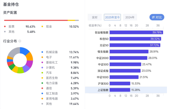 以招商中证2000指数增强C这只基金为例,聚焦小盘成长风格公司,持仓行业分散,个股持仓严格控制在0.6%左右(前十大重仓占比6.02%),集中了大量新兴产业和“专精特新”企业,受益国产替代、产业升级等国家战略。