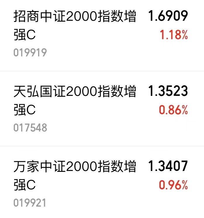 $招商中证2000指数增强C(OTCFUND|019919)$上周五上涨1.18%