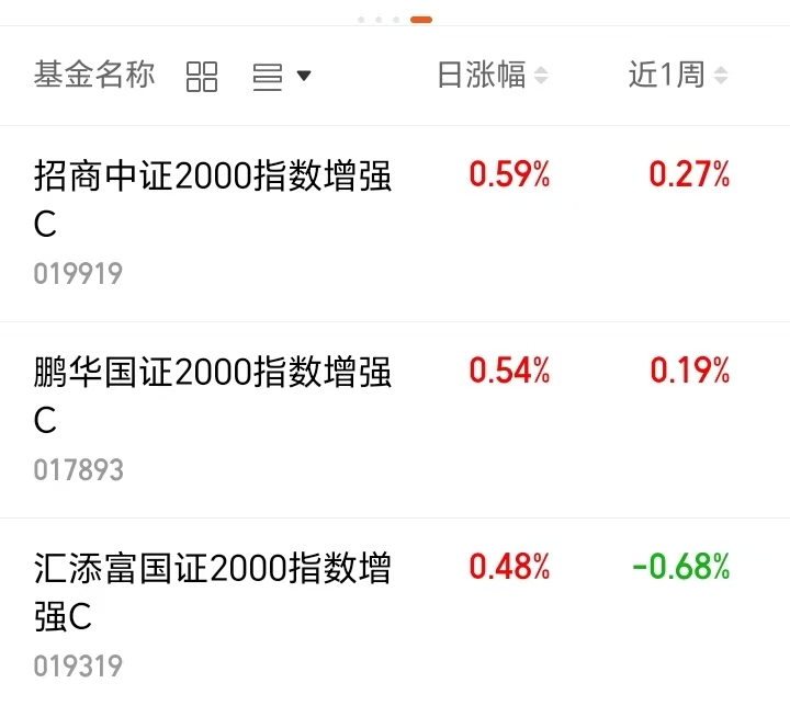 $鹏华国证2000指数增强C(OTCFUND|017893)$近一周上涨0.19%;