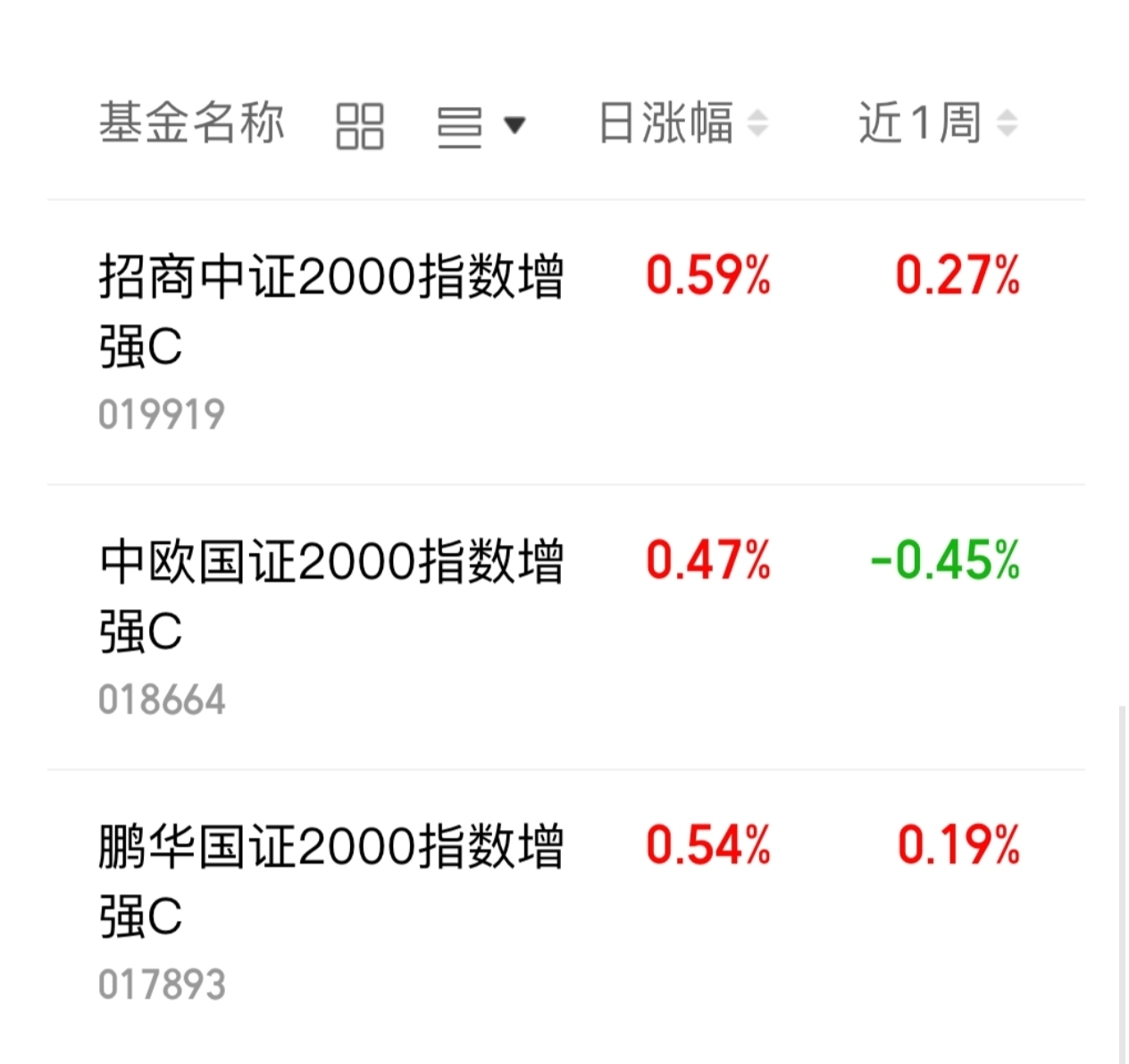 中欧的国证2000指数基金昨天涨0.47%,但一周下来还跌了0.45%