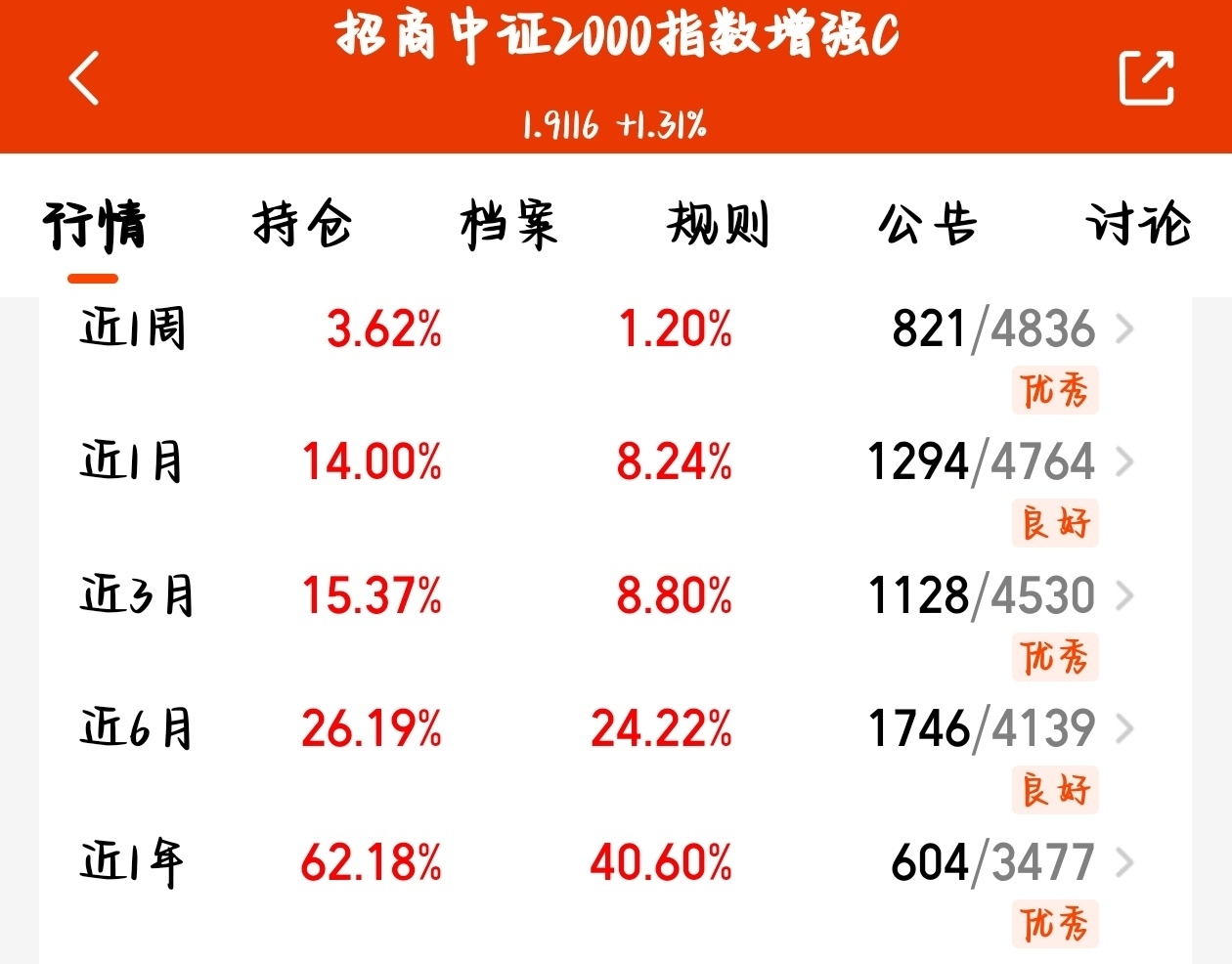 当下小盘行情彻底火了,$招商中证2000指数增强C$太会踩节奏!近期稳稳跟涨连收