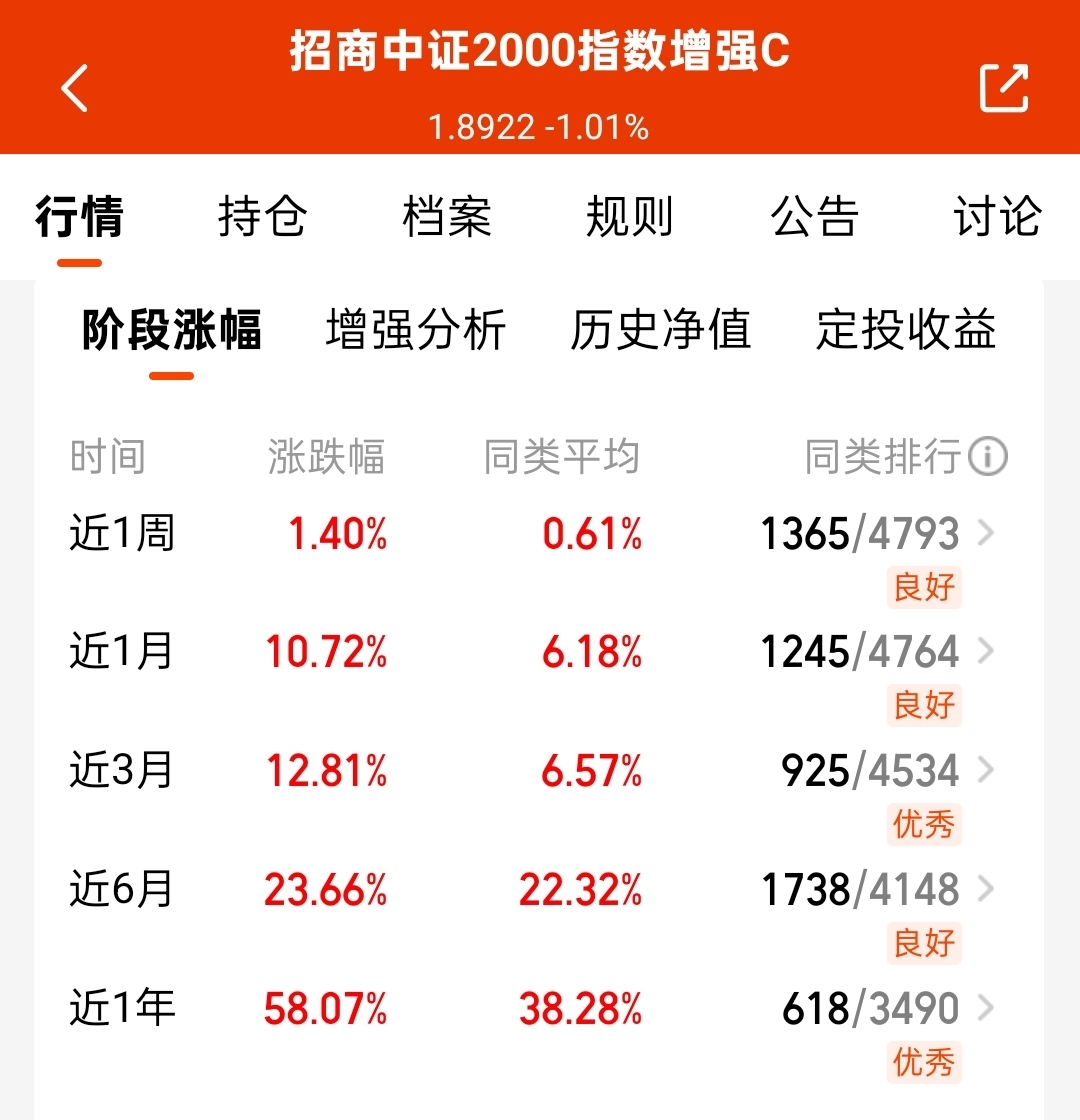 历史业绩优秀呀!股市长牛是确定性比较大的!招商中证2000指数增强C,近一年涨超