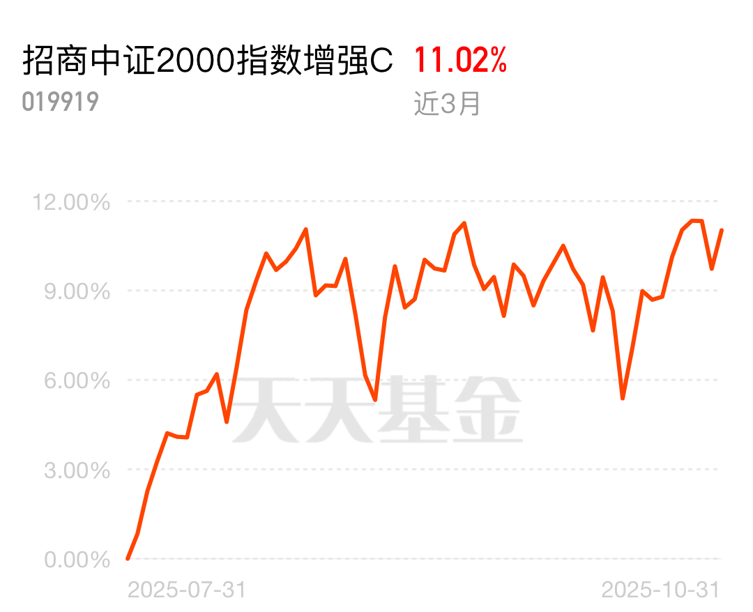 最近市场行情里,小微盘股成了发力点,大盘震荡时它稳得住,反弹时又冲在前。招商中证2000指数增强C近3个月涨11.02%,是布局小盘风格的好帮手。$招商中证2000指数增强C$