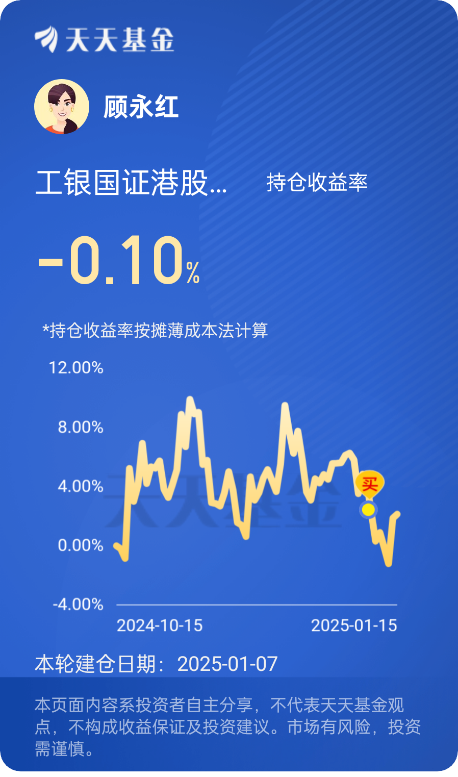 #关注港股反弹# 我看好港股反弹机会,今天继续反弹。我从上周二开始定投的$工银国证港股通科技ETF发起式联接C$ ,今天又上涨0.26%,最近六个月上涨22.99%(同类基金平均涨幅14.7%),超额收益显著!我长期坚持定投工银黄金ETF联接E、工银沪深300指数C、工银印度基金人民币、工银科创ETF联接E、工银科创ETF联接Y等8只工银瑞信基金产品,获得了非常好的持有体验!