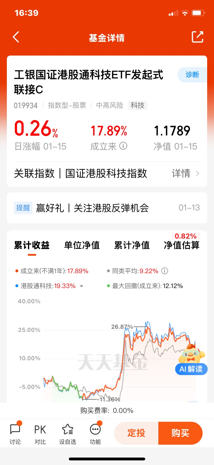 此外,对于投资者来说,选择合适的投资标的也是至关重要的。建议投关注那些具有良好专业管理团队、业绩稳定的优质基金参与,如$工银国证港股通科技ETF发起式联接C$等,这样可以在市场的波动中获取更好的收益。