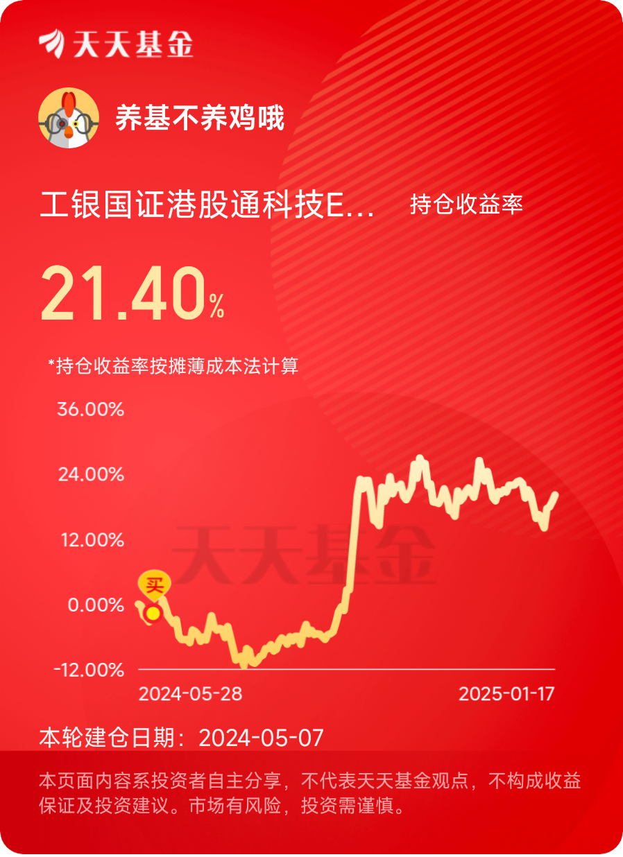 展望未来,我将继续与工银国证港股通科技ETF发起式联接C(019934)并肩前行,共同探索港股科技领域的无限可能。我相信,在港股科技浪潮的推动下,我们将携手共进,迎接更加美好的明天。这份与基金同行的经历,将成为我人生旅途中一段宝贵的回忆,激励我在投资的道路上不断前行,追求更加卓越的成长与回报。在港股科技的新视界里,工银国证港股通科技ETF发起式联接C(019934)将永远是我稳健的伙伴,陪伴我共同书写属于我们的投资传奇,共同开启更加辉煌的未来。