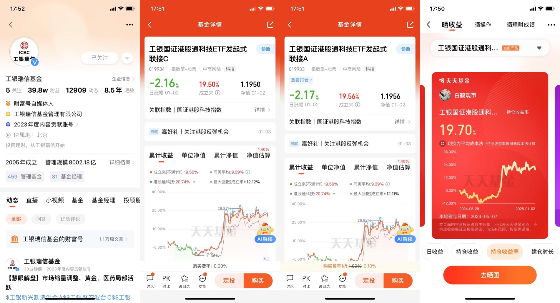 工银瑞信基金公司以其专业的投资理念和稳健的运营风格,赢得了市场的广泛认可。公司拥有一支专业的投研团队,专注于市场动态和产品创新,致力于为投资者提供高质量的基金产品和服务。工银国证港股通科技ETF发起式联接C(019934)正是在这样的专业环境下精心打造,旨在为投资者提供一个高效、便捷的投资工具。