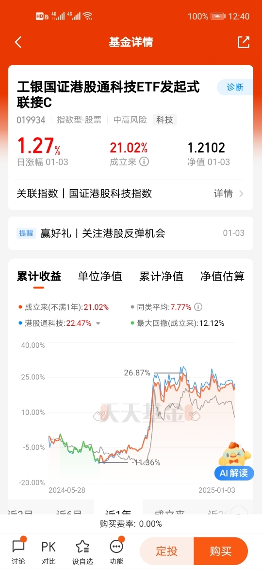 打卡第17天,看好港股科技板块看好$工银国证港股通科技ETF发起式联接C$,港股