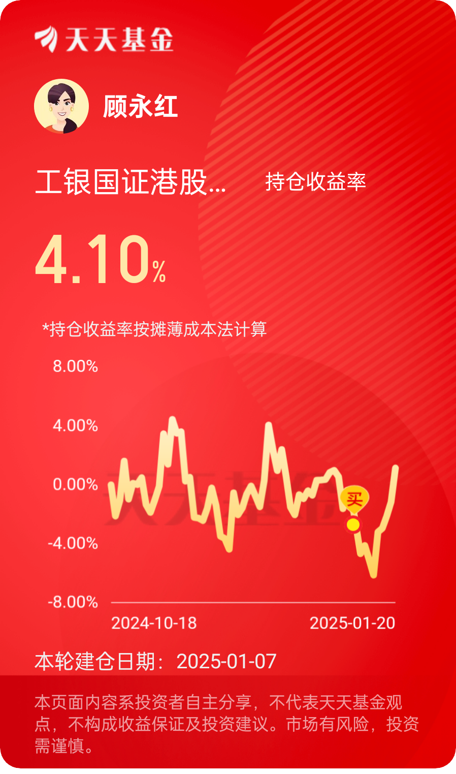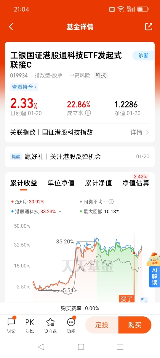 #关注港股反弹# 打卡第十七天,今天恒生科技指数大涨2.59%,$工银国证港股通科技ETF发起式联接C$上涨2.33%,最近六个月上涨30.92%(同类基金平均涨幅14.84%),超额收益显著!我信赖工银瑞信基金,长期定投工银黄金ETF联接E、工银沪深300指数C、工银印度基金人民币、工银科创ETF联接E、工银科创ETF联接Y等8只工银瑞信基金产品,获得了非常好的持有体验!