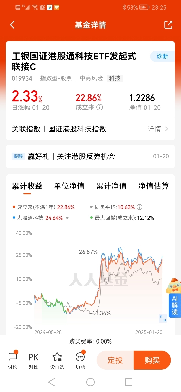 #关注港股反弹#打卡第20天,近期港股持续反弹,看好港股通科技指数,超越恒生科技等同类科技主题指数,目前估值低,港股通上市科技公司基本面良好!看好$工银国证港股通科技ETF发起式联接C$ ,投资港股科技可以投资工银瑞信国证港股通科技,重点关注港股通科技板块,打造基本面量化投资策略,追求超额收益,基金经理赵栩管理业绩优秀。通过基金买港股,获取收益,即使回调,是当下不错的选择。@工银瑞信基金