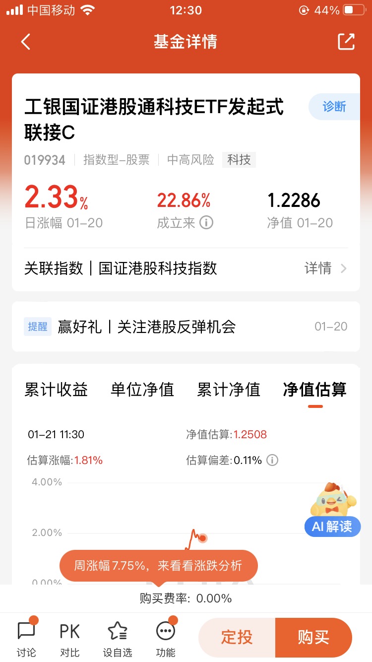 #关注港股反弹#打卡第19天,我看好港股科技板块的投资机会。港股科技涵盖互联网、半导体等多领域,有腾讯等巨头和创新企业,行业前景广阔。政策支持力度大,且估值低于 A 股和美股,性价比高。从资金面看,南向资金加持,外资也有望回流。以$工银国证港股通科技ETF发起式联接C$ 为例,其近 6 个月涨幅达 30.92%,业绩表现出色,也侧面反映了港股科技板块的潜力。