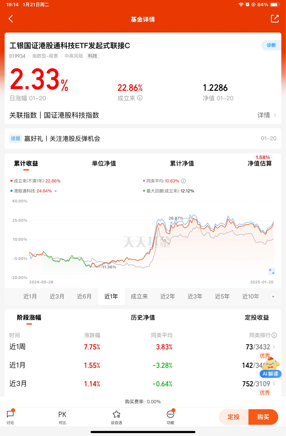 此外,对于投资者来说,选择合适的投资标的也是至关重要的。建议投关注那些具有良好专业管理团队、业绩稳定的优质基金参与,如$工银国证港股通科技ETF发起式联接C$等,这样可以在市场的波动中获取更好的收益。
