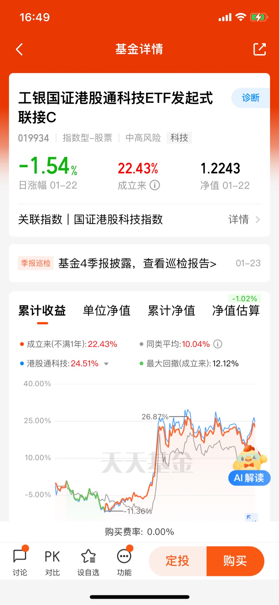 在这个充满希望的时刻,我将目光投向了港股市场,尤其是工银国证港股通科技ETF发起式联接C(019934)这只基金,它在我的资产配置新启航中,犹如一颗璀璨的明珠,散发着诱人的光芒。