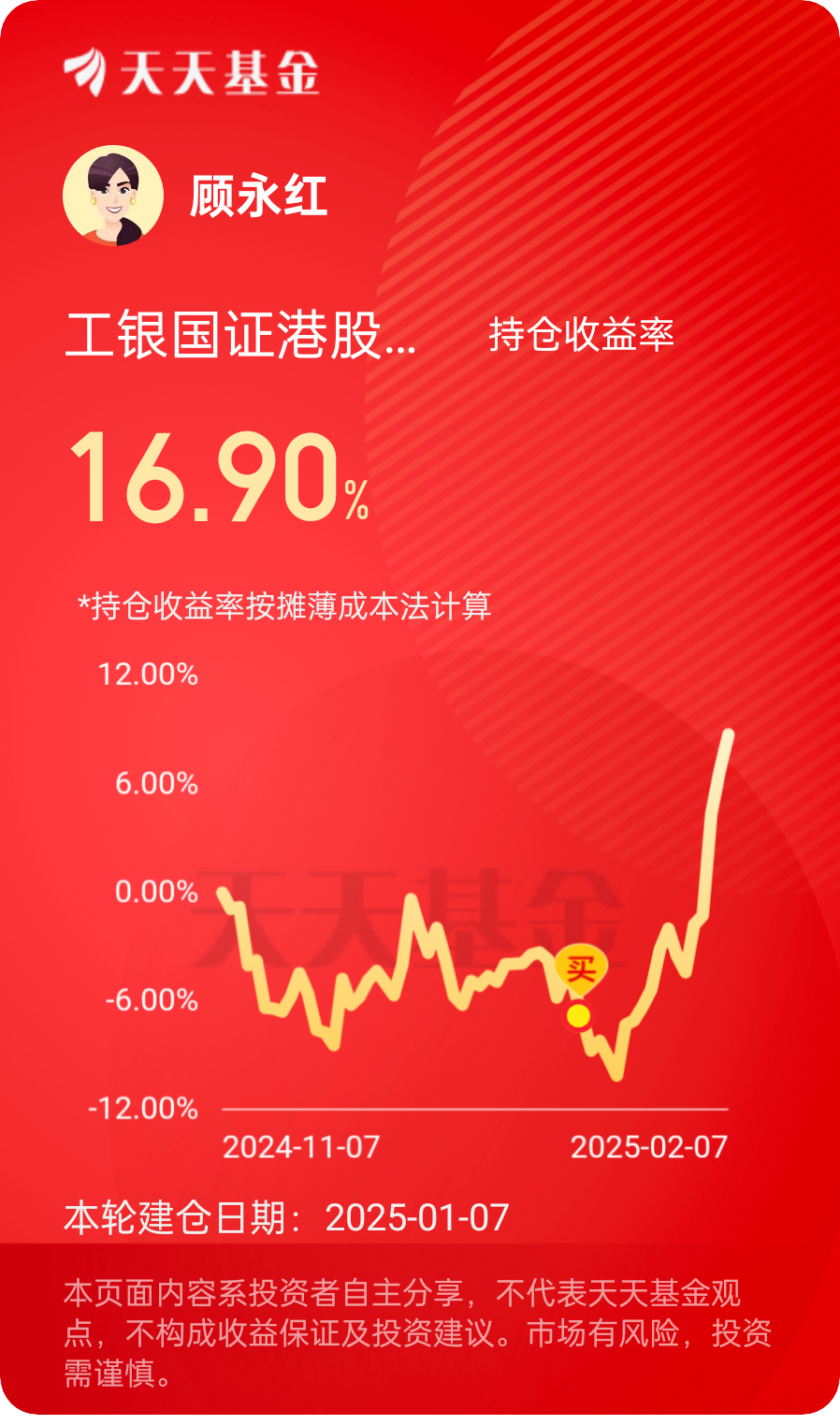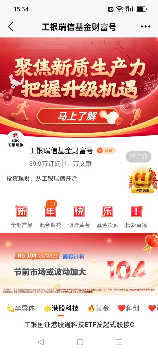 #开工啦,我的投资新启航#打卡第18天,春节后第一周,A股、港股继续上涨,下周大概率还要上涨。$工银国证港股通科技ETF发起式联接C$ 上涨1.86%,近六个月上涨52.73%(同类基金平均涨幅23.39%) 超额收益显著!我是工银瑞信基金的长期忠实粉丝,目前定投10只工银瑞信基金产品,收益和体验都非常好!