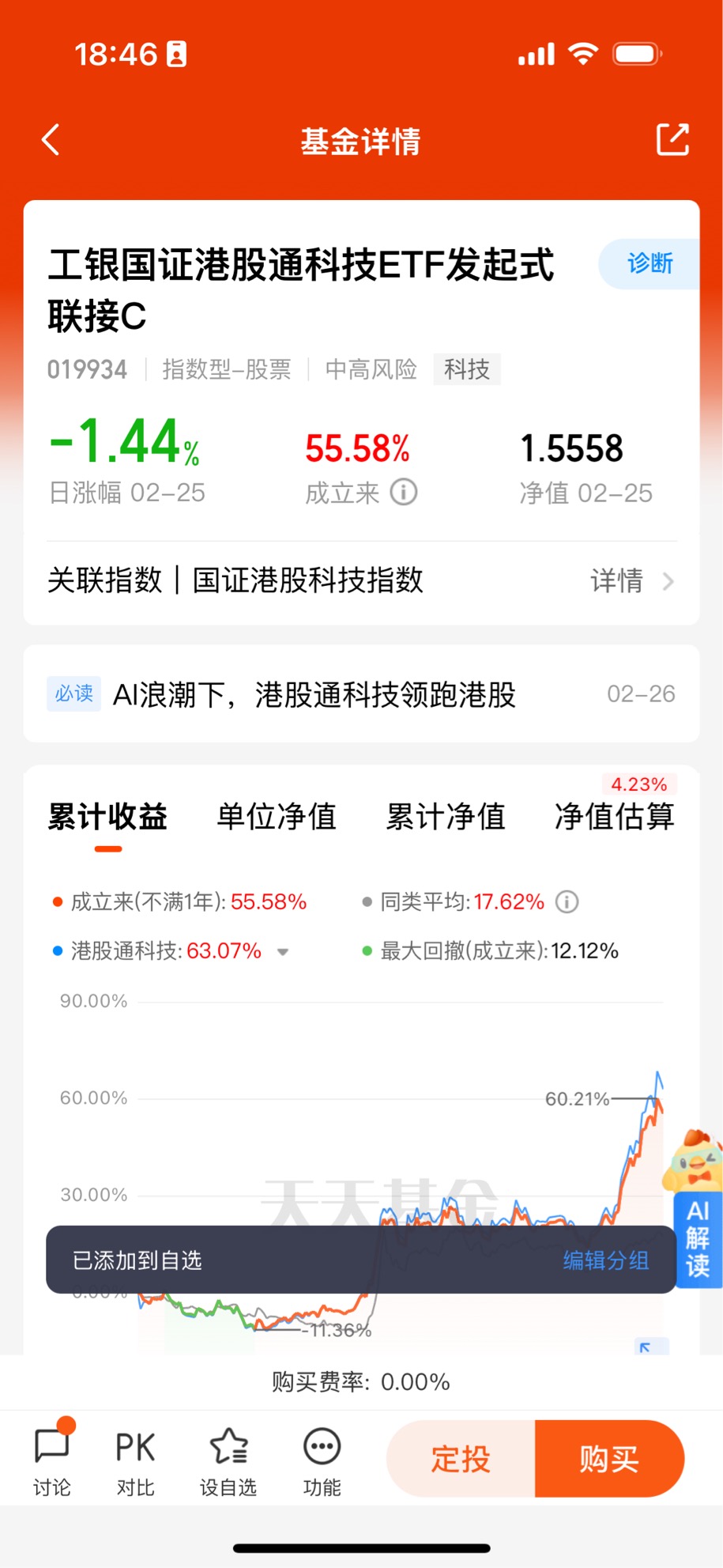 #港股通科技领跑港股#打卡第1天+我看好工银国证港股通科技ETF发起式联接基金。