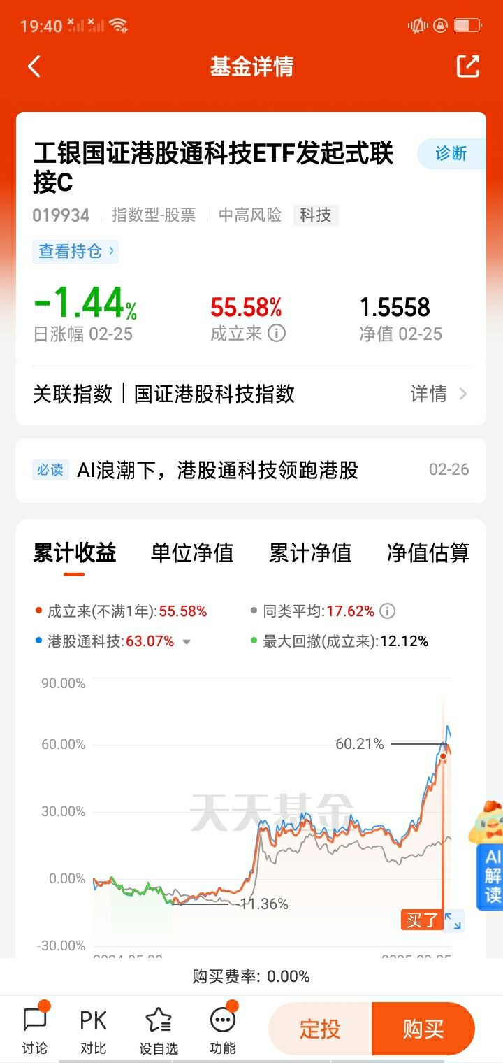 打卡第一天,作为工银国证港股通科技ETF发起式联接C持有人,我对AI浪潮下的港股