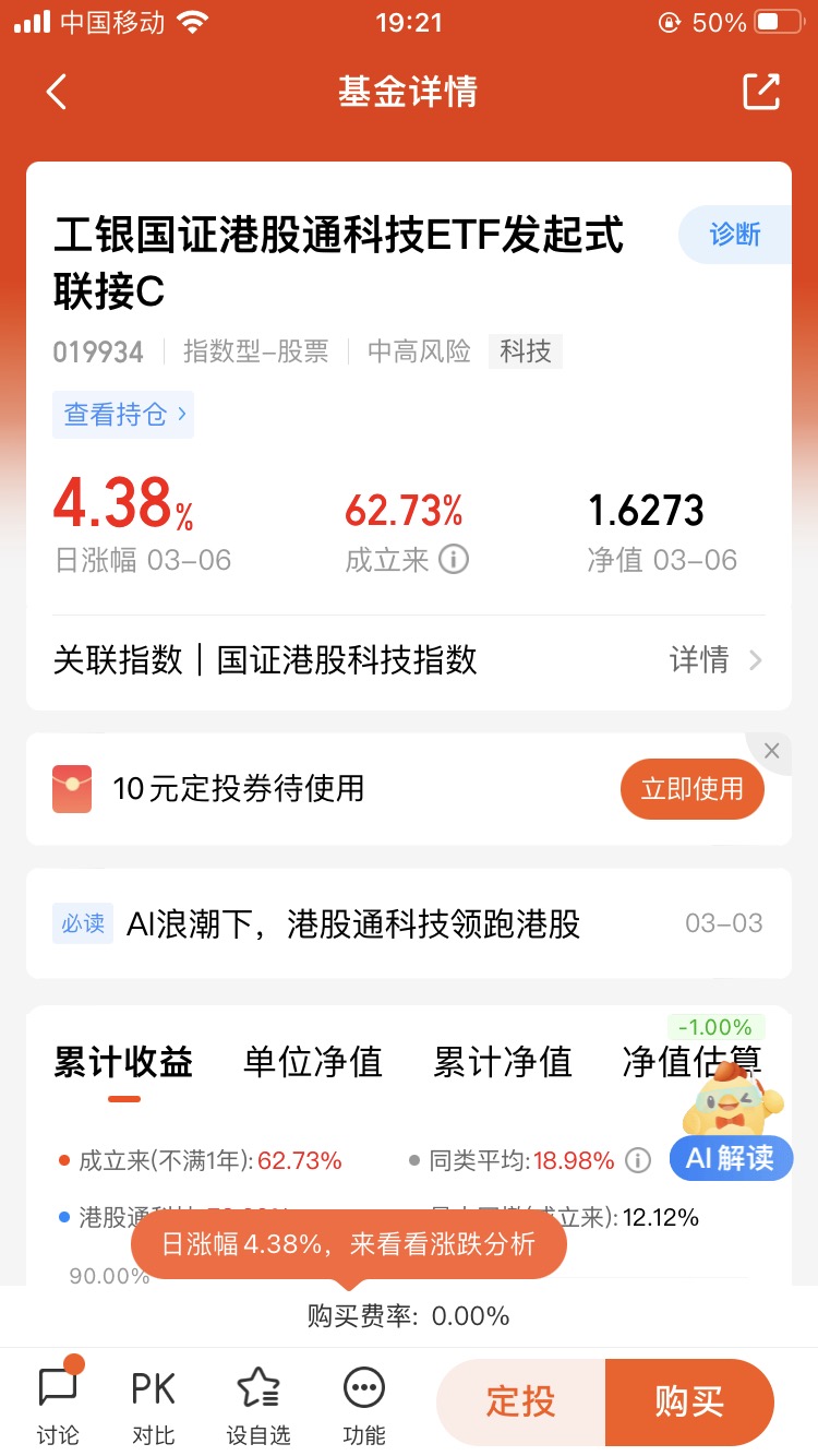 #港股通科技领跑港股#打卡第10天,AI 浪潮正重塑全球科技产业格局,港股科技板块凭借独特的产业链定位与估值优势,成为布局中国科技资产重估的重要窗口。工银国证港股通科技 ETF 发起式联接 C作为跟踪国证港股通科技指数的被动型基金,其核心优势在于精准覆盖 AI 产业链核心环节:指数中互联网平台(如腾讯、阿里)、半导体(中芯国际、华虹半导体)、智能汽车(比亚迪、小米)等领域权重合计超 70%,深度受益于国产大模型技术突破(如 DeepSeek)、算力需求爆发及政策对 “新质生产力” 的支持。@工银瑞信基金