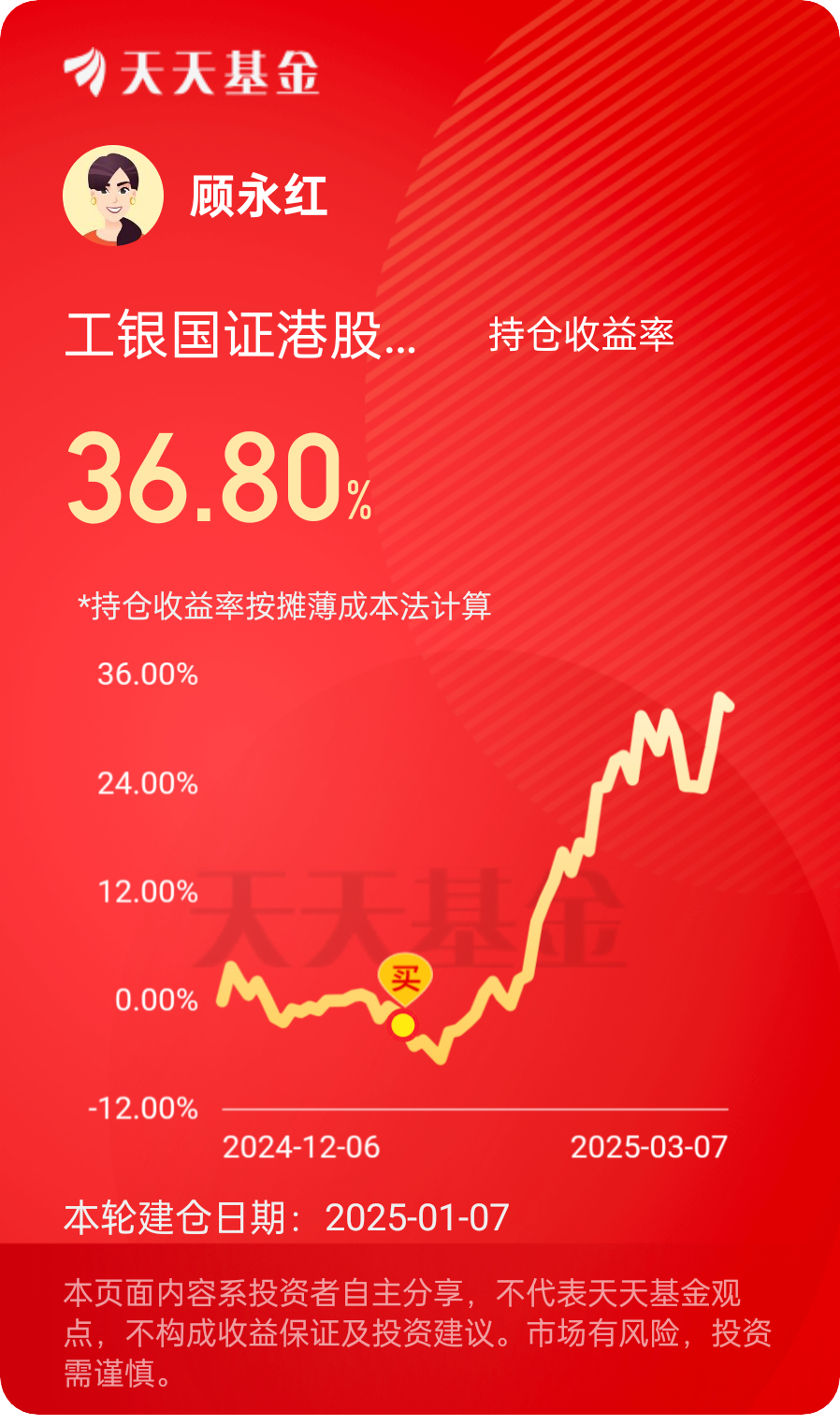 我是工银瑞信基金长达20年的忠实粉丝,一直坚定追随工银瑞信基金,长期坚持定投工银国证港股通科技ETF发起式联接C等12只工银基金(含工银科创ETF联接Y),获得了很好的投资回报和持有体验!将会继续重点配置工银瑞信基金产品,通过长期持有获取更好的投资回报!@工银瑞信基金