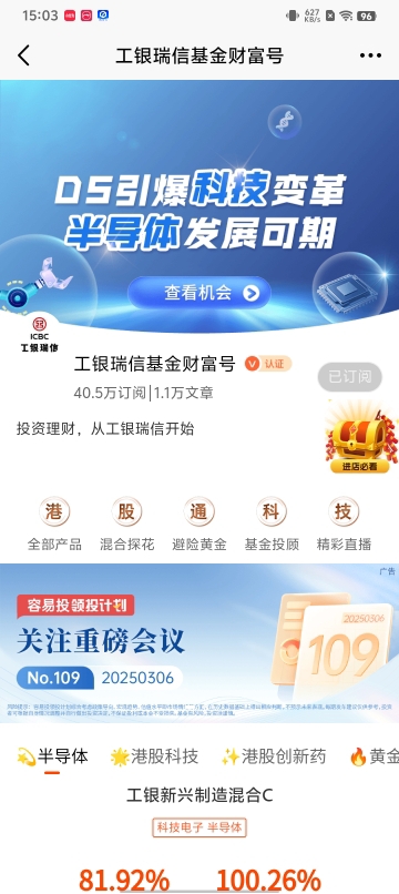 工银国证港股通科技ETF发起式联接C近6月以来获得71.03%的回报,同期同类平均33.21%,同期业绩比较基准43.87%,获得了不错的超额收益,表现还是非常不错的。在DeepSeek概念行情火热的当下,是时候采取行动了。通过投资工银国证港股通科技ETF发起式联接C基金,不仅能够紧跟港股科技发展的步伐,还能在DeepSeek等热门概念的推动下,实现财富的稳健增长。@工银瑞信基金