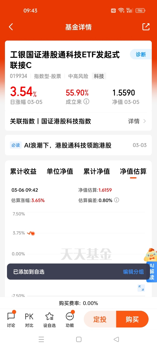 投资工银国证港股通科技ETF联接C并非毫无风险。科技行业的快速发展伴随着技术迭代迅速的特点,企业需要不断投入大量资金进行研发创新,以保持竞争力。如果企业在技术研发上落后或失败,可能面临市场份额下降、业绩下滑的风险,从而对基金净值产生负面影响。港股市场受国际经济形势、地缘政治等因素的影响较大,市场波动较为频繁。全球经济增长放缓、贸易摩擦、地缘政治冲突等都可能引发港股市场的大幅波动,导致基金净值的起伏。