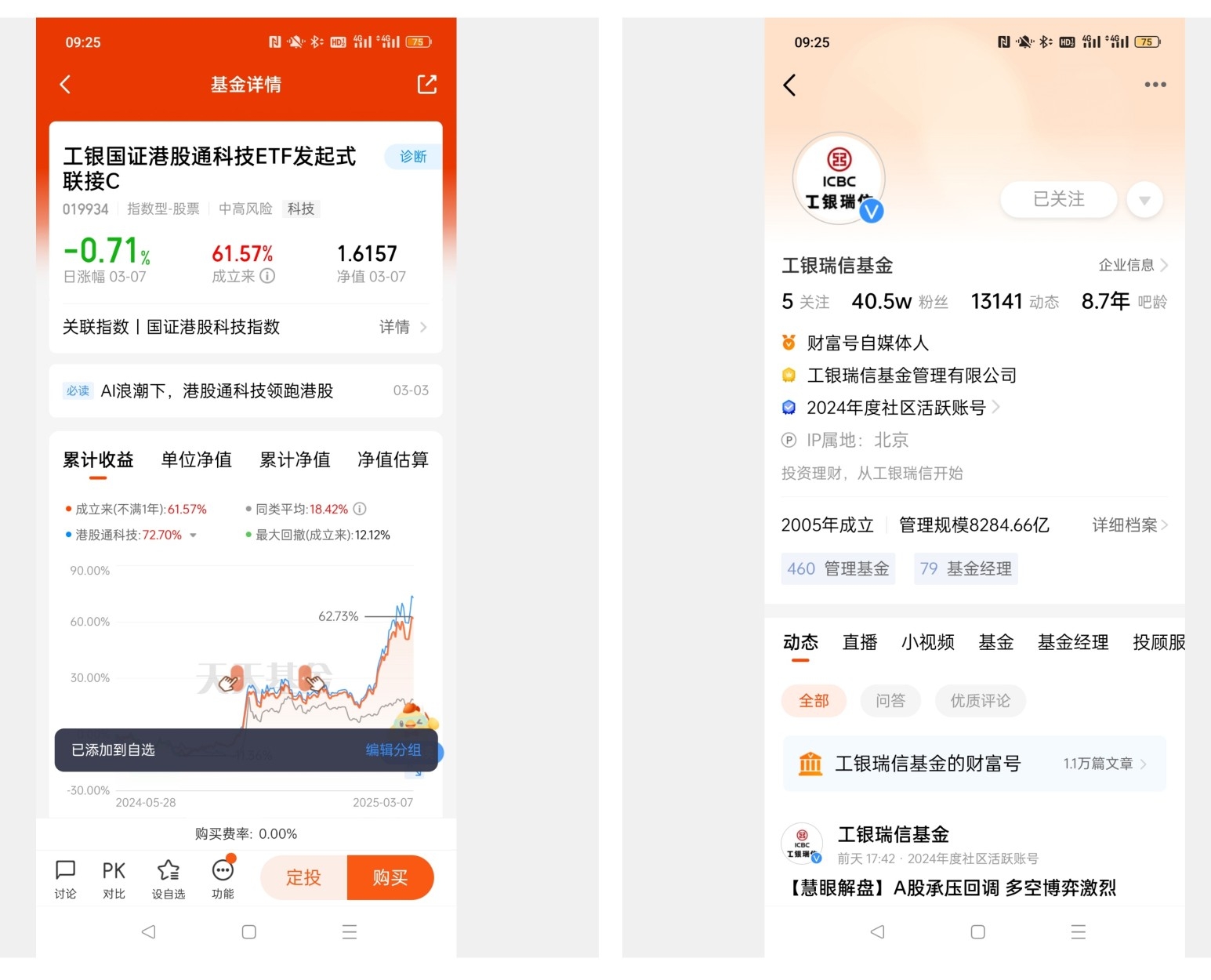 工银国政港股通科技ETF很好衔接了我们投资港股的方式,时不我待眼下正是我们慢慢布局港股科技板板的时候。近期的两会其实给了我们很多未来的信息,在投资方向上大科技肯定是主赛道,投资方法和投资态度方面还是紧跟国家政策以中长期投资为主,一定要有足够的耐心和信心去面对投资这件事物。从去年九月底到十月初的行情可以看出,未来无论港股还是A股行情的走势肯定是慢节奏的稳步上升为主这也是一种成熟完善的资本市场该有的样子。所以我们的投资方式也应该是以中长期为主,这样无形之中就降低了很多风险。方向选择了科技,方式选择了中长期,最后再参与一下工银国政港股通科技ETF肯定会有好的回报。
