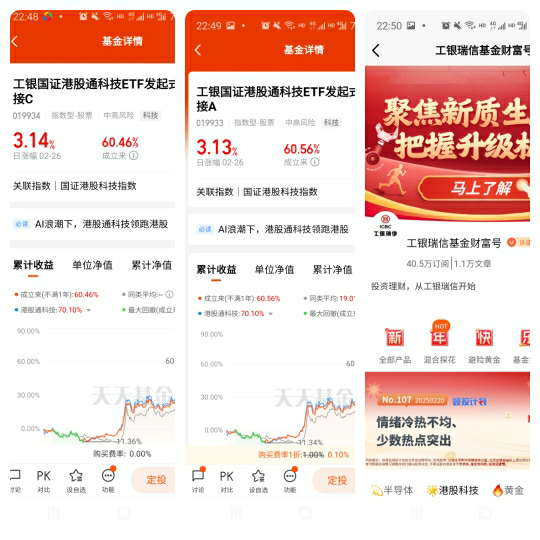 $工银国证港股通科技ETF发起式联接C(019934)$ 紧密跟踪国证港股通科技指数,该指数从香港交易所选取30只流动性较好,市值较大的科技领域相关上市公司股票构成指数样本股,以反映港股通科技领域龙头上市公司的运行特征。投资港股科技,选它就对了!@工银瑞信基金