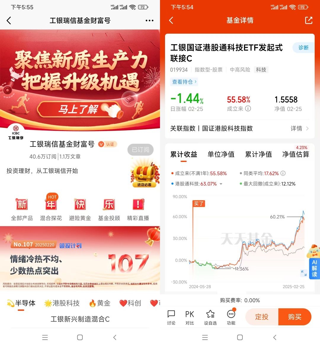 更让我满意的是,工银国证港股通科技ETF发起式联接C(019934)的各项费率较低,持有满7天0赎回费,这对于我们这些普通投资者来说,无疑是一个巨大的吸引力。它降低了我们的投资成本,让我们能够更加轻松地参与到港股科技投资中来。