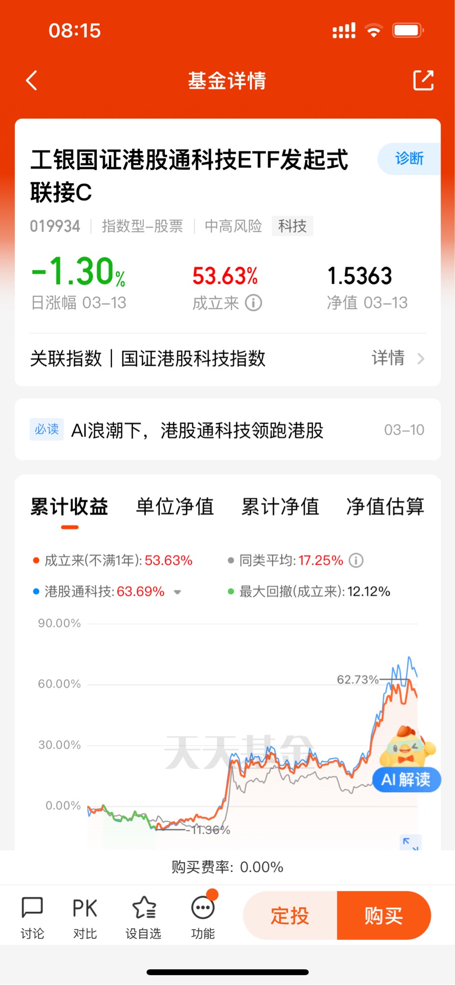 优质港股基金的良机。我将继续关注港股市场的动态,把握投资机会,以期在未来的市场波动中获得稳健的回报。