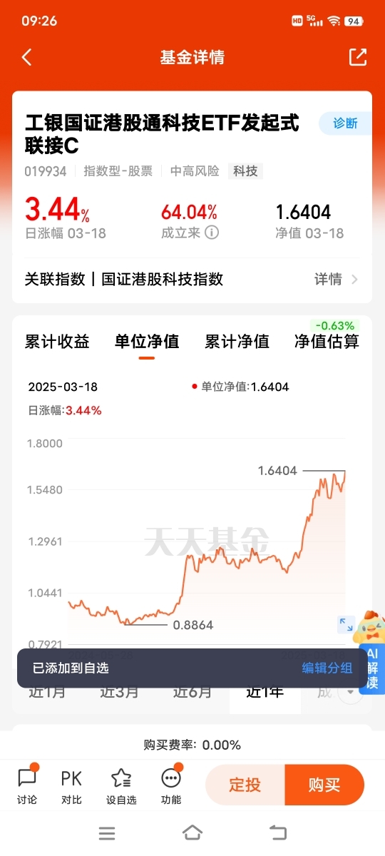#测评工银港股通科技#打卡第17天,工银国证港股通科技ETF联接C已加自选关注择机定投,这只基金不仅紧密跟踪国证港股通科技指数,还为投资者提供了一个便捷且高效的方式,以参与港股科技板块的投资,分享该领域的增长红利。