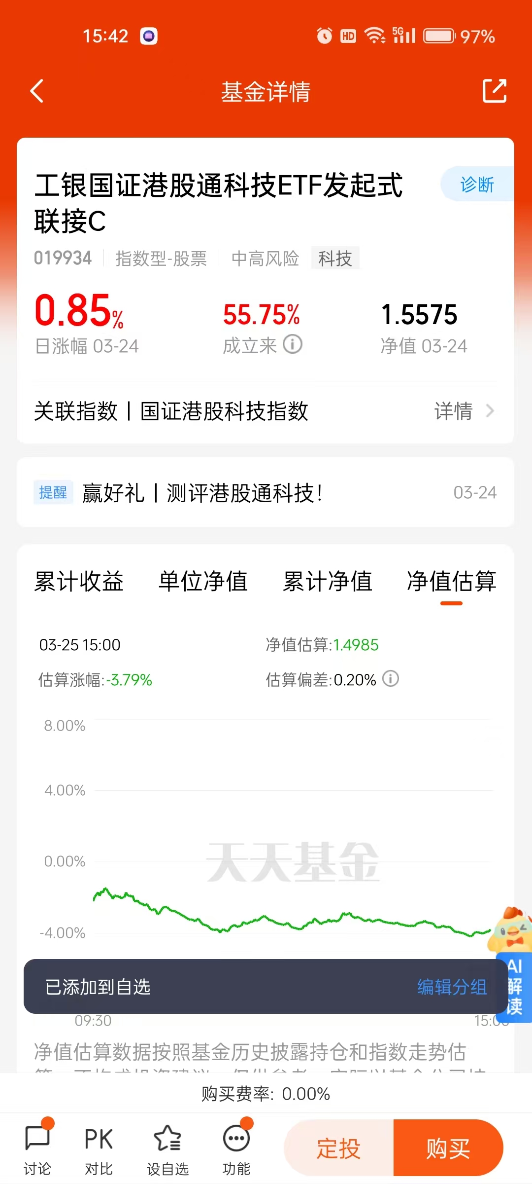 #测评工银港股通科技#打卡第7天。港股+科技宝藏基工银国证港股通科技ETF联接基金C截至3月17日近6月回报率51.80%,它就像一匹黑马,在港股通科技板块的赛道上一路狂奔,把其他基金远远甩在身后。