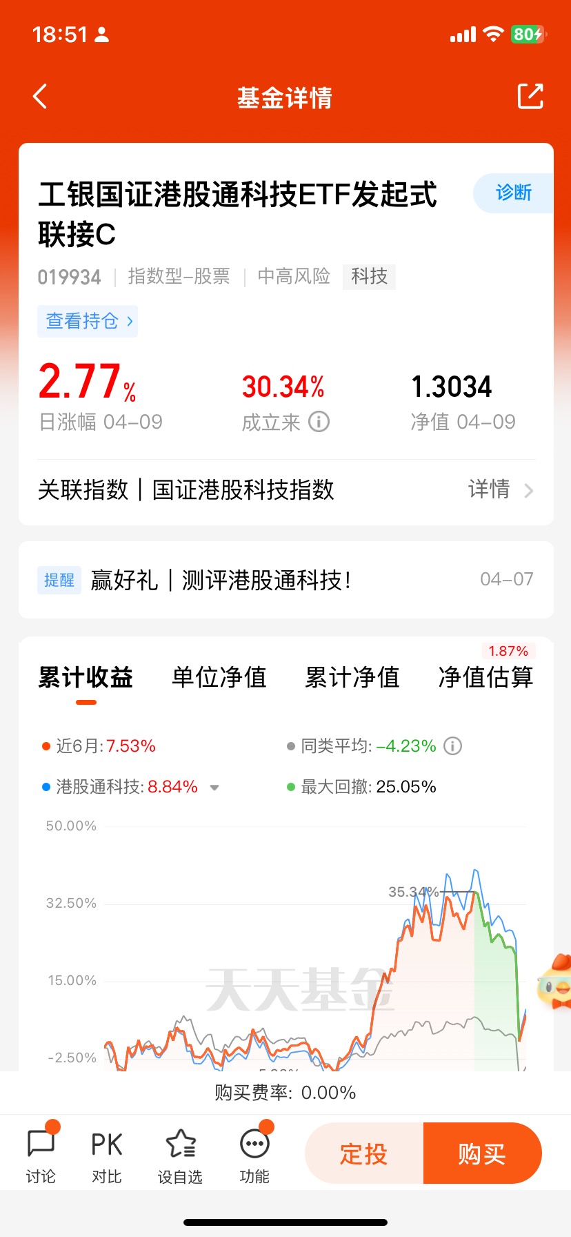#测评工银港股通科技# 今天港股市场继续大幅反弹,明天有望延续!$工银国证港股通科技ETF发起式联接C$ 是布局港股科技投资机会的好选择,昨天涨2.77%,今年以来上涨6.71%,在3442只同类基金中排名前4%,表现非常优异!