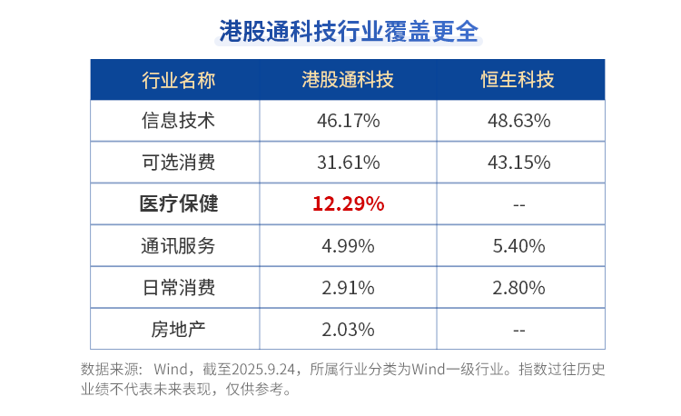 相较恒生科技指数,除信息技术、通讯服务、可选消费和日常消费,国证港股通科技指数还涵盖医药,有助于兼顾捕获科技催化下的港股医药机会。