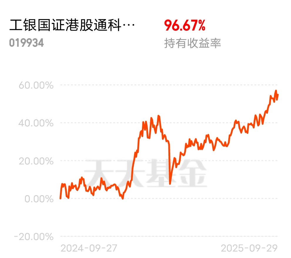 #分享国庆见闻,晒收益,瓜分好礼!# 今天周二,9月圆满收官,A股、港股今日继续上涨,沪指收涨0.52%,港股通科技指数收涨2.35%,$工银国证港股通科技ETF发起式联接C$昨天涨1.74%,近一年上涨54.83%,大幅跑赢同类基金41.48%的平均涨幅,在3052只同类基金中位居前列,非常亮眼!