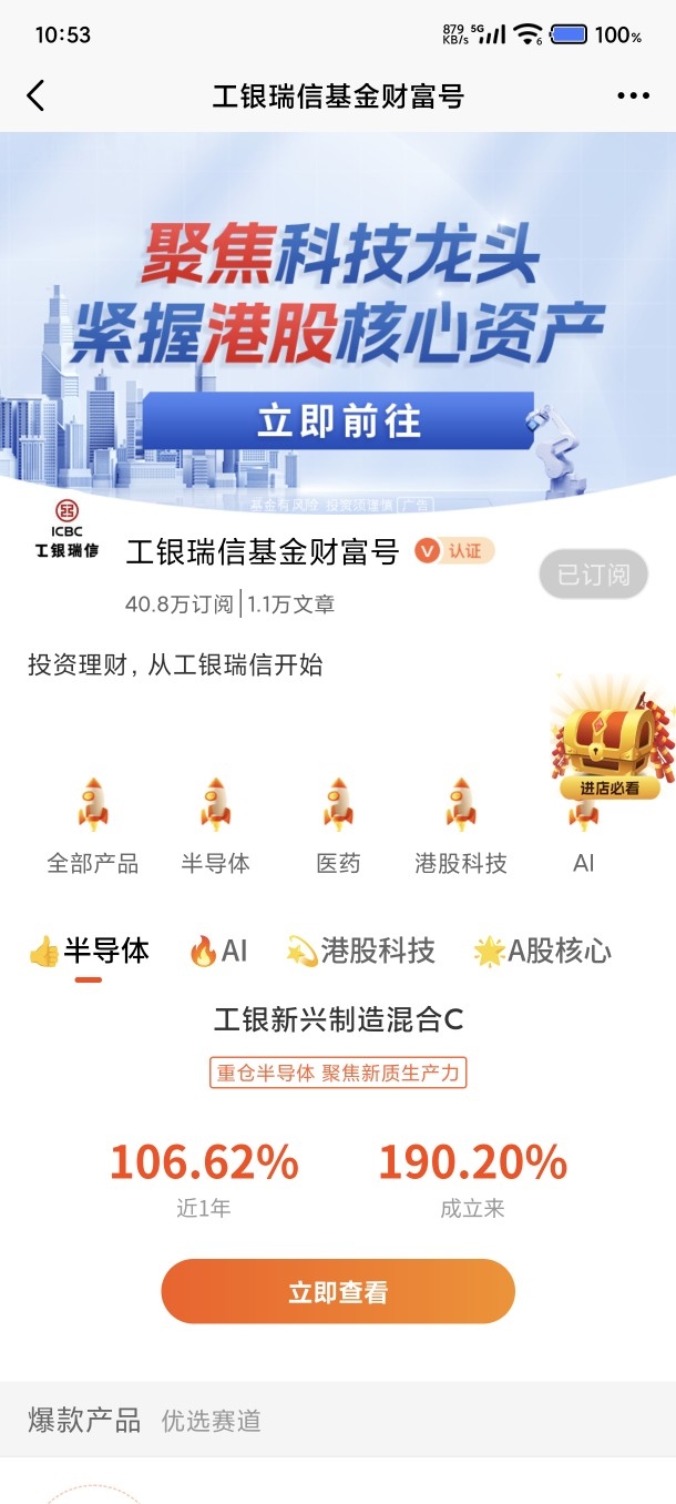 工银国证港股通科技ETF发起式联接C (019934)主要跟踪的指数是国证港股通科技指数,该指数覆盖了30只通过港股通交易的科技龙头股,前十大权重股占比近70%(包括腾讯、小米、美团、中芯国际、百济神州等),聚焦于互联网、半导体、生物科技等高成长领域。