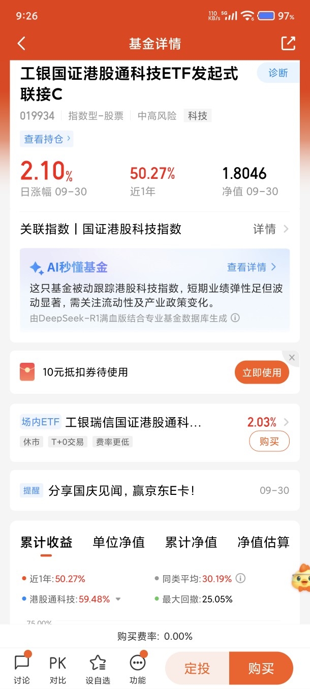 $工银国证港股通科技ETF发起式联接C$ @工银瑞信基金