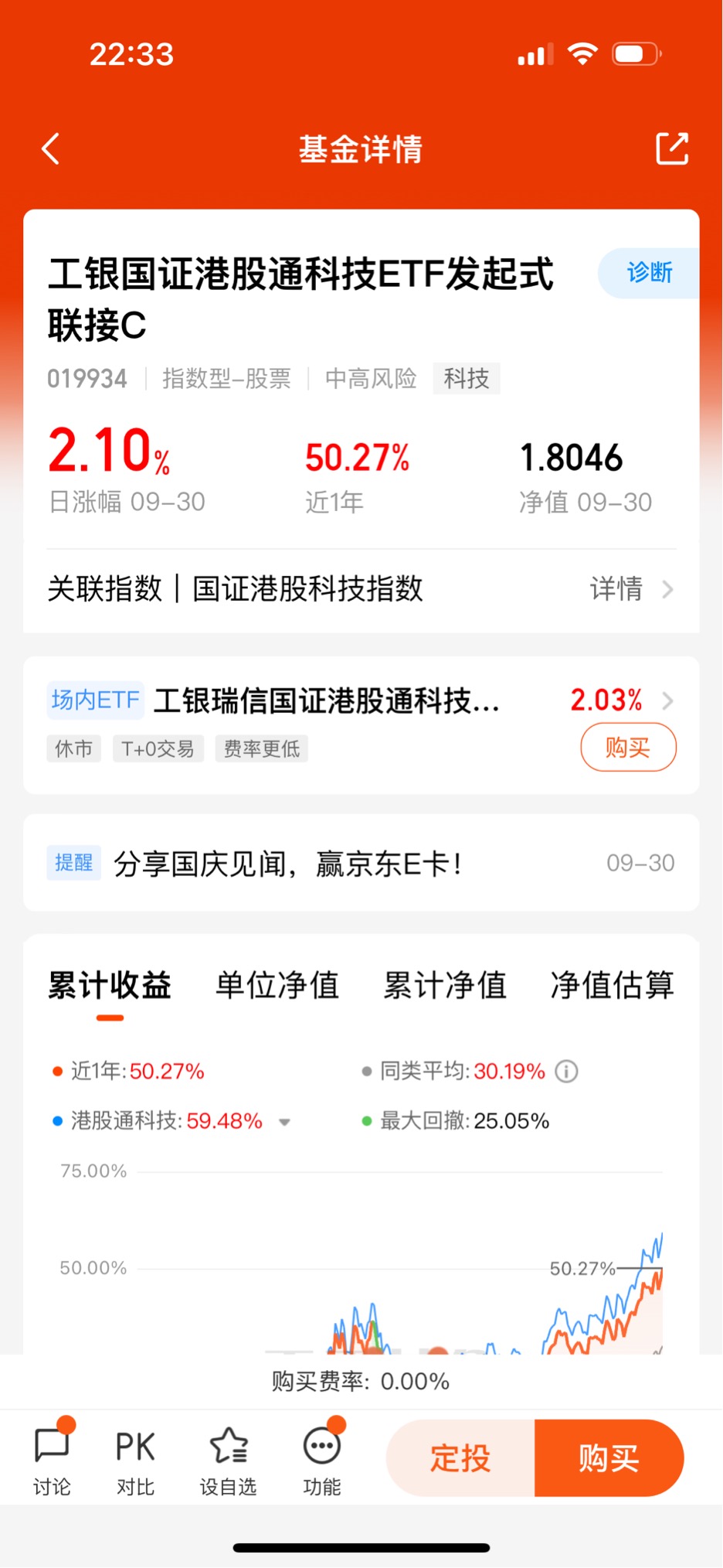 打卡第5天,科技引领市场投资主线,看好$工银国证港股通科技ETF发起式联接C$长