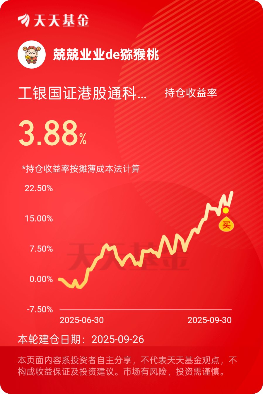 我认为国证港股通科技后续表现非常值得期待!2025年最后三个月,我的投资规划是继续买入$工银国证港股通科技ETF发起式联接C$ ,并坚定持有。今年以来资金持续流入港股科技板块,随着基本面、盈利面的改善,后续资金流入趋势有望延续。南下资金的“定价影响力”逐步提升,南在港股科技板块的行情推动与定价中基本发挥了实质性作用——随着A股与港股资金流通愈发频繁,港股中优质科技资产持续吸引南下资金布局,这种资金流向并非短期脉冲,而是长期资产配置需求的体现。